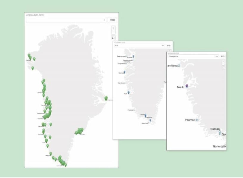 Forside > Vejlederunivers > Uddannelsesområdet > Uddannelsesbyer i Grønland